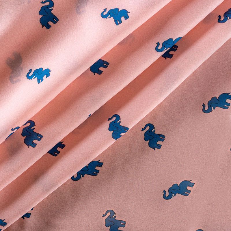 Итальянский крепдешин с матовой лицевой поверхностью с игривым ярким принтом на нежном персиково-розовом фоне, тонкий, слегка прозрачный, отлично драпируется, легкий и струящийся. Идеально подойдет для пошива платьев и сарафанов расклешенных моделей, с воланами, летящих юбок, топов, блузки, костюма в пижамном стиле.