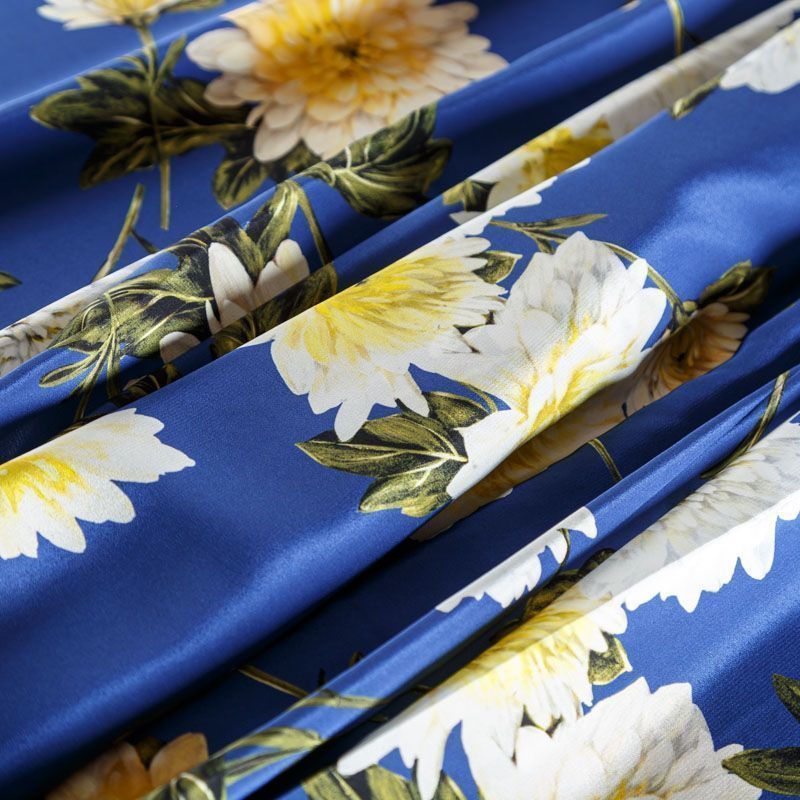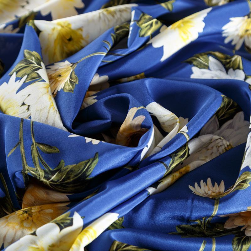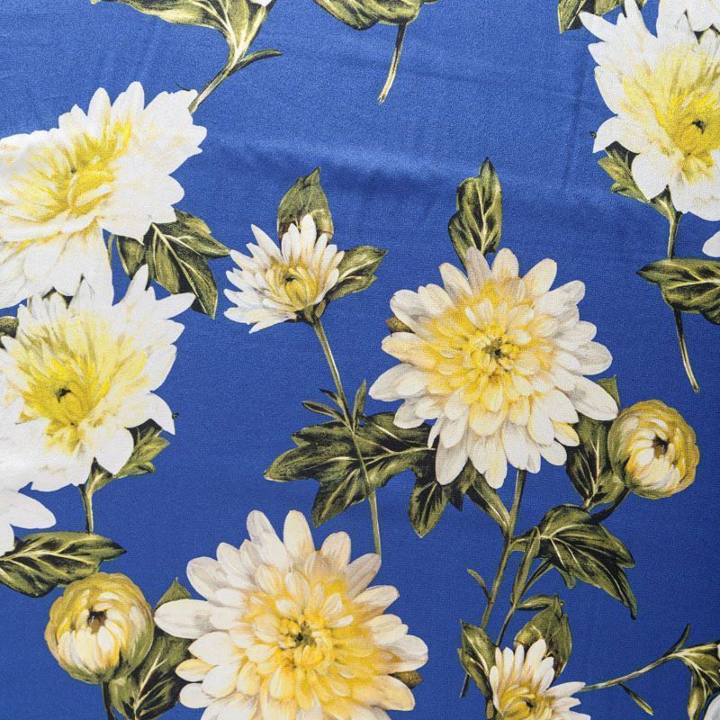 Крепдешин натуральный К15-003 синий принтованный в Нарьян-Маре