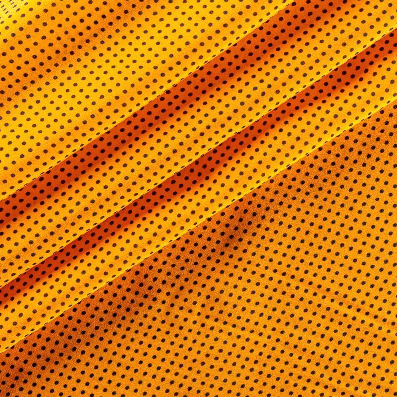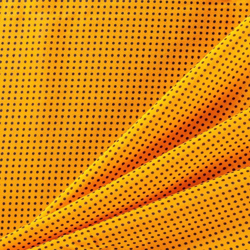 Итальянский натуральный крепдешин с классическим принтом "в горошек", тонкий, слегка прозрачный, отлично драпируется, легкий и струящийся. Идеально подойдет для пошива платьев и сарафанов расклешенных моделей, с воланами, летящих юбок, топов, блузки, юбки, широких брюк, костюма в пижамном стиле.
