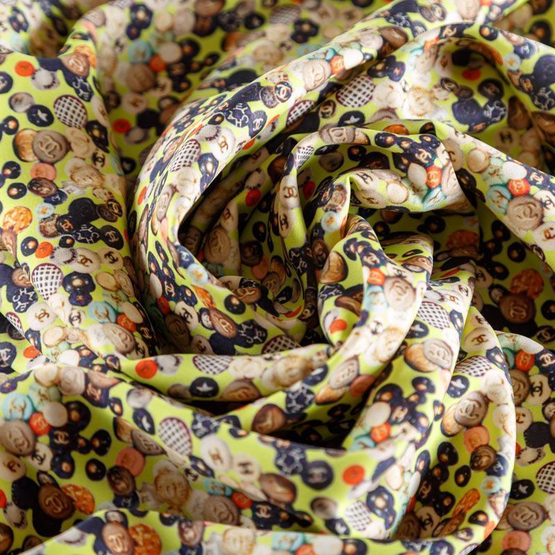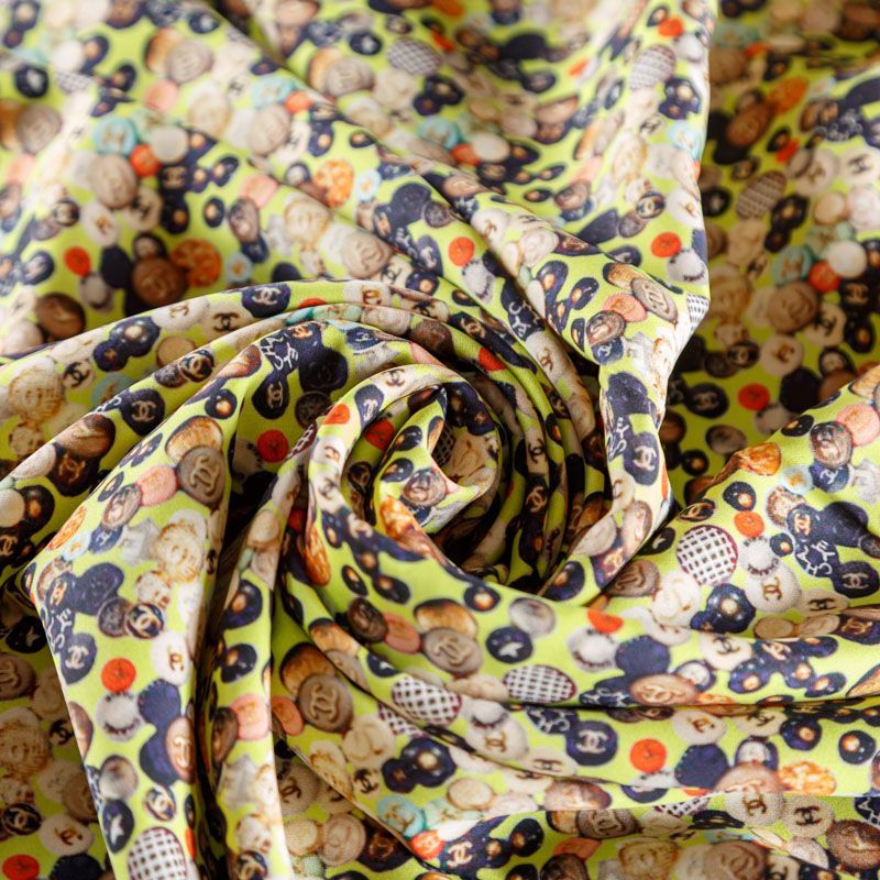 Крепдешин натуральный К18-074 желтый принтованный в Нарьян-Маре