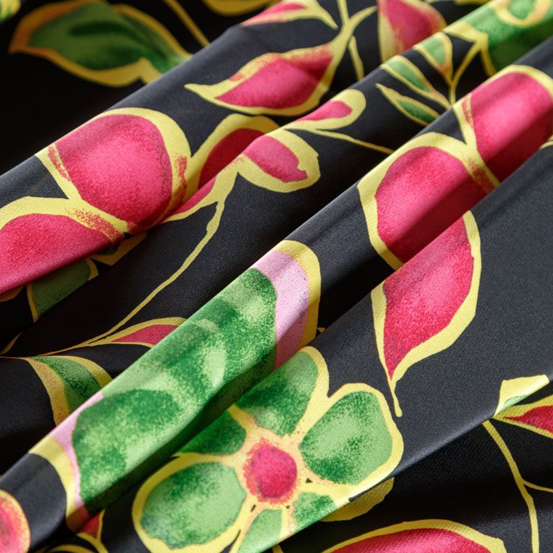 Крепдешин натуральный К18-187 черный принтованный в Нарьян-Маре
