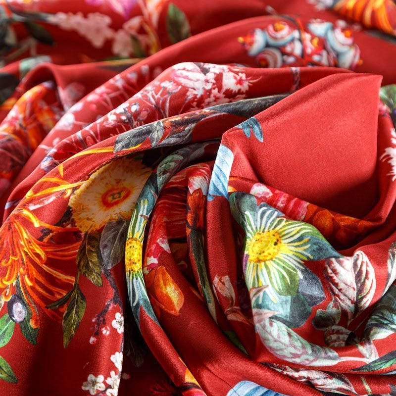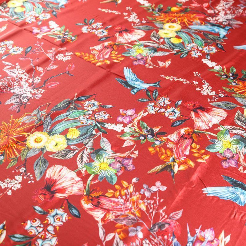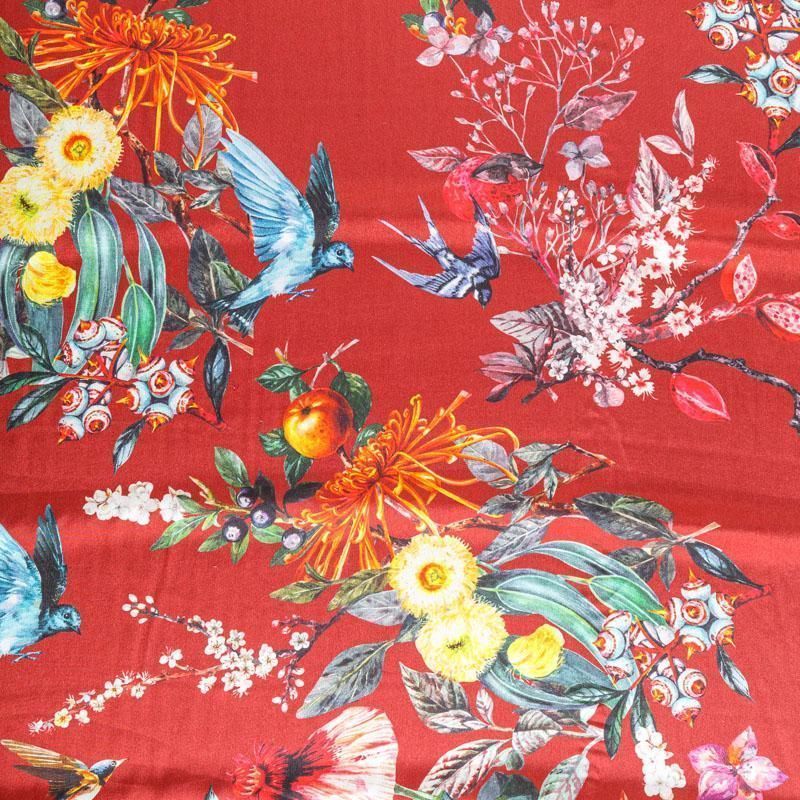 Крепдешин натуральный К24-040 красный принтованный в Нарьян-Маре
