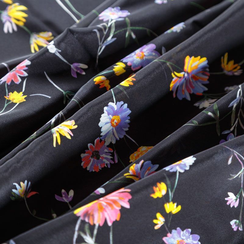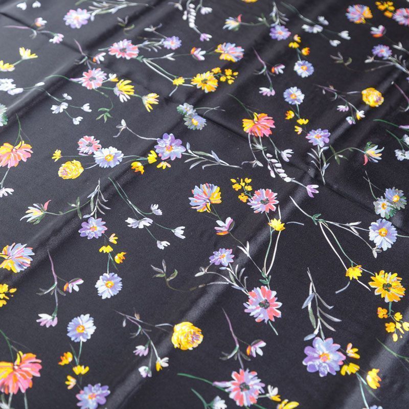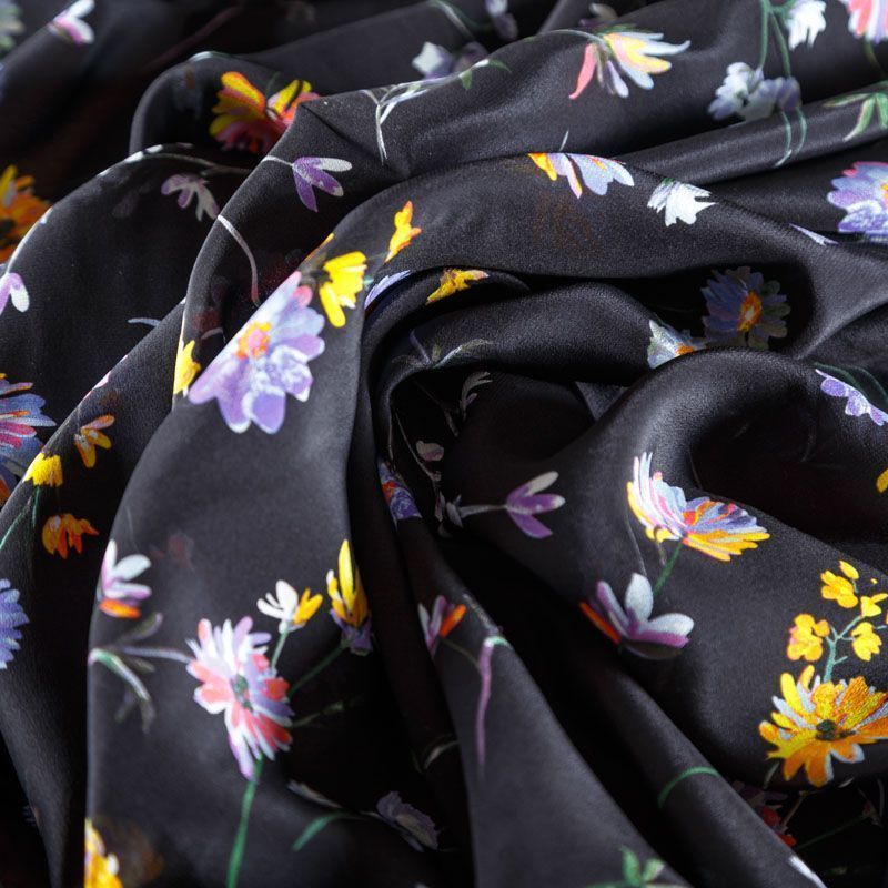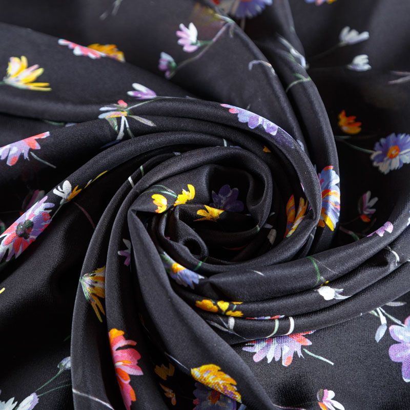 Крепдешин натуральный К24-042 черный принтованный в Нарьян-Маре