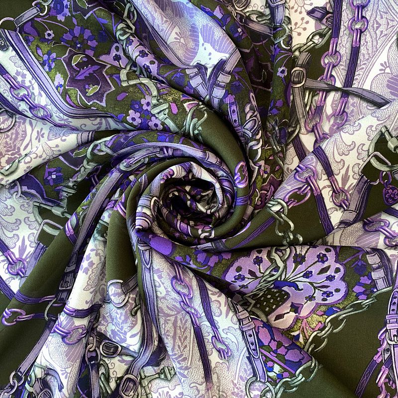 Крепдешин натуральный К32-231 болотно-зеленый принтованный
