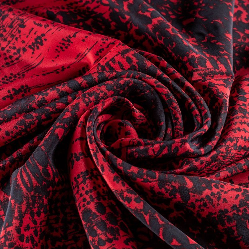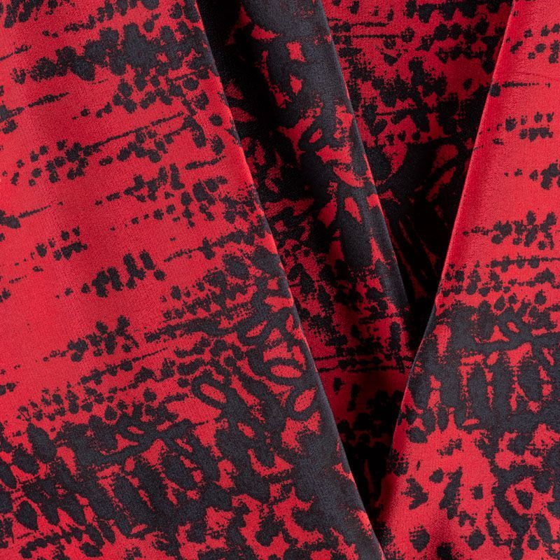 Крепдешин натуральный К32-249 малиново-красный принтованный в Нарьян-Маре
