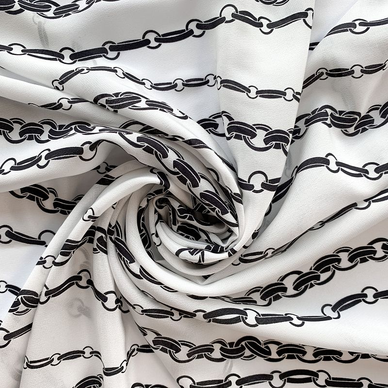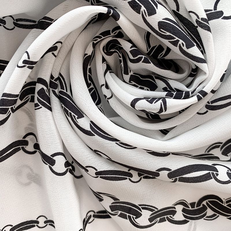 Крепдешин натуральный К32-322 белый принтованный