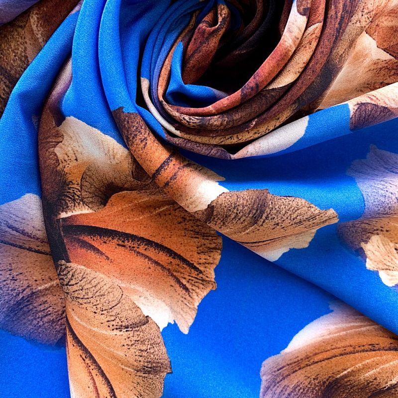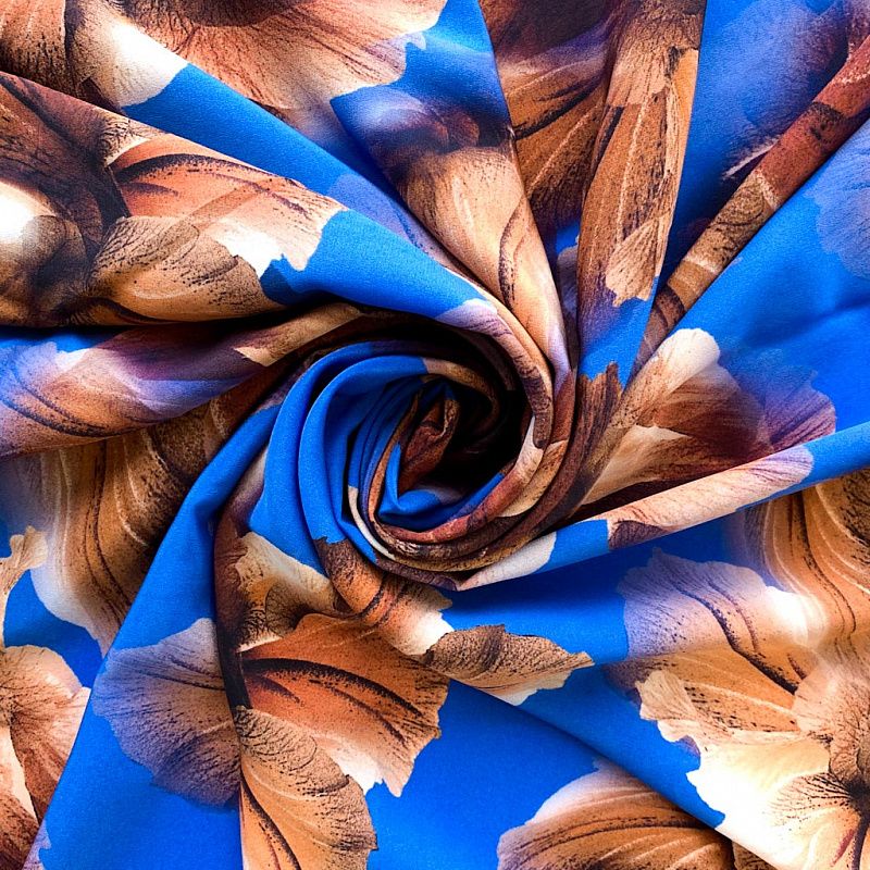 Крепдешин натуральный К32-373 лазурно-синий принтованный в Нарьян-Маре