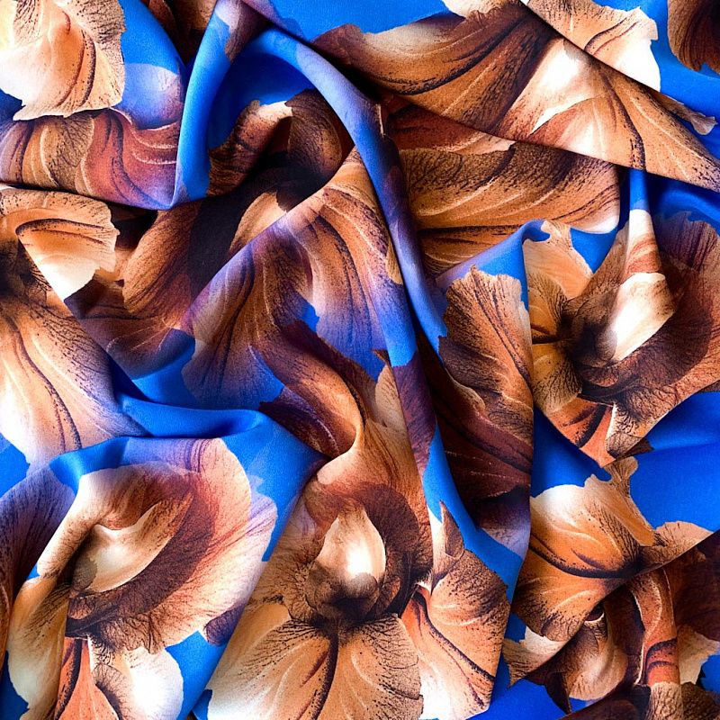 Крепдешин натуральный К32-373 лазурно-синий принтованный