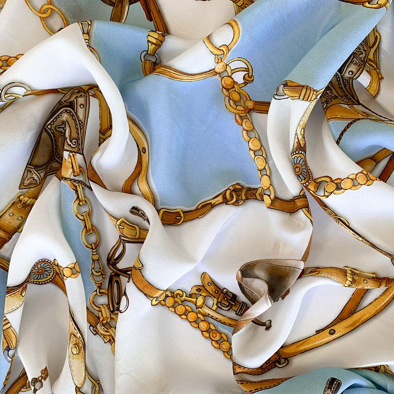 Крепдешин натуральный К32-381 молочно-голубой принтованный в Нарьян-Маре