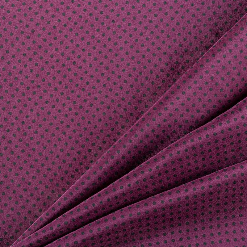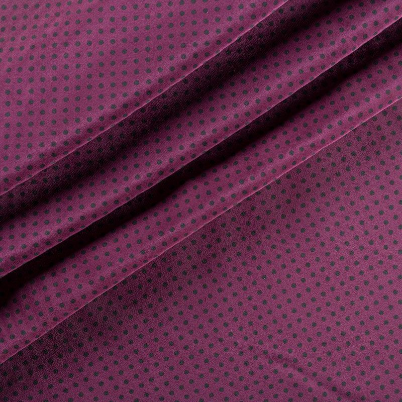 Итальянский натуральный крепдешин в сложном винном оттенке с классическим принтом "в горошек", тонкий, не прозрачный, отлично драпируется, легкий и струящийся. Идеально подойдет для пошива платьев и сарафанов расклешенных моделей, с воланами, летящих юбок, топов, блузки, юбки, широких брюк, костюма в пижамном стиле.