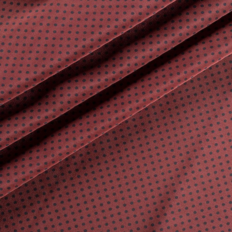 Итальянский натуральный крепдешин в сложном красивом оттенке с классическим принтом "в горошек", тонкий, не прозрачный, отлично драпируется, легкий и струящийся. Идеально подойдет для пошива платьев и сарафанов расклешенных моделей, с воланами, летящих юбок, топов, блузки, юбки, широких брюк, костюма в пижамном стиле.