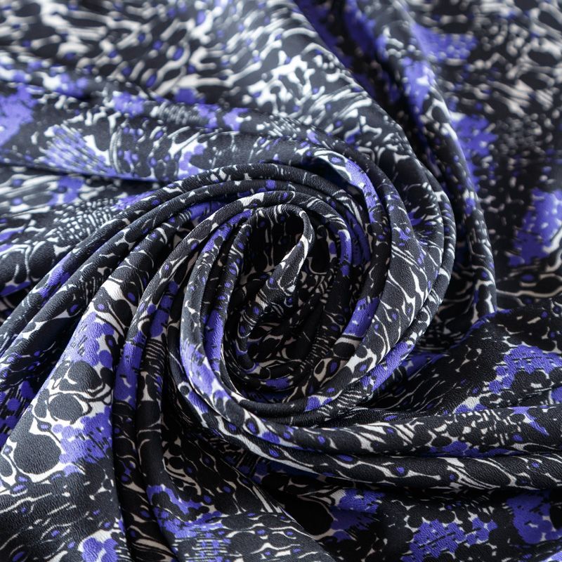 Крепдешин натуральный К7-057 черный принтованный в Нарьян-Маре