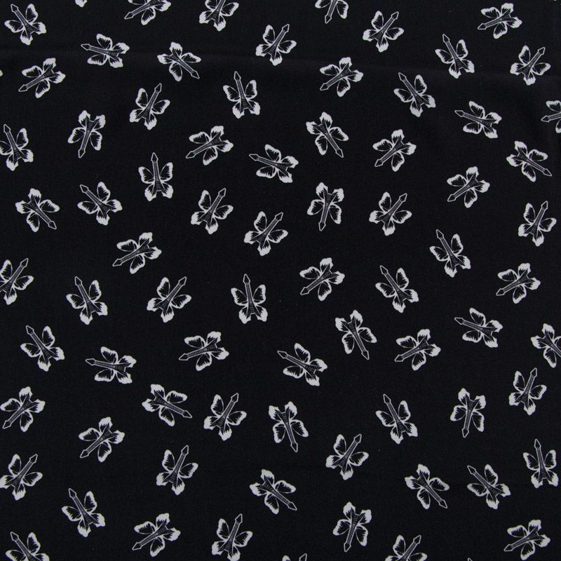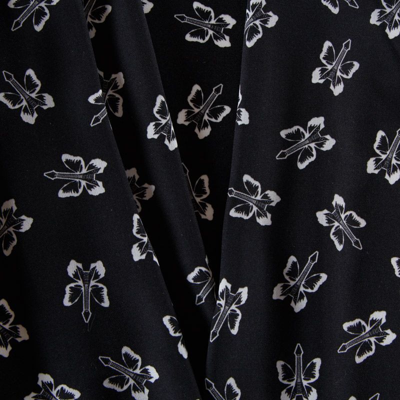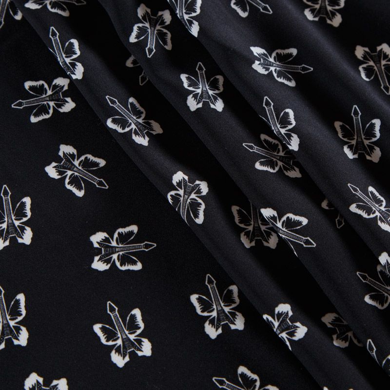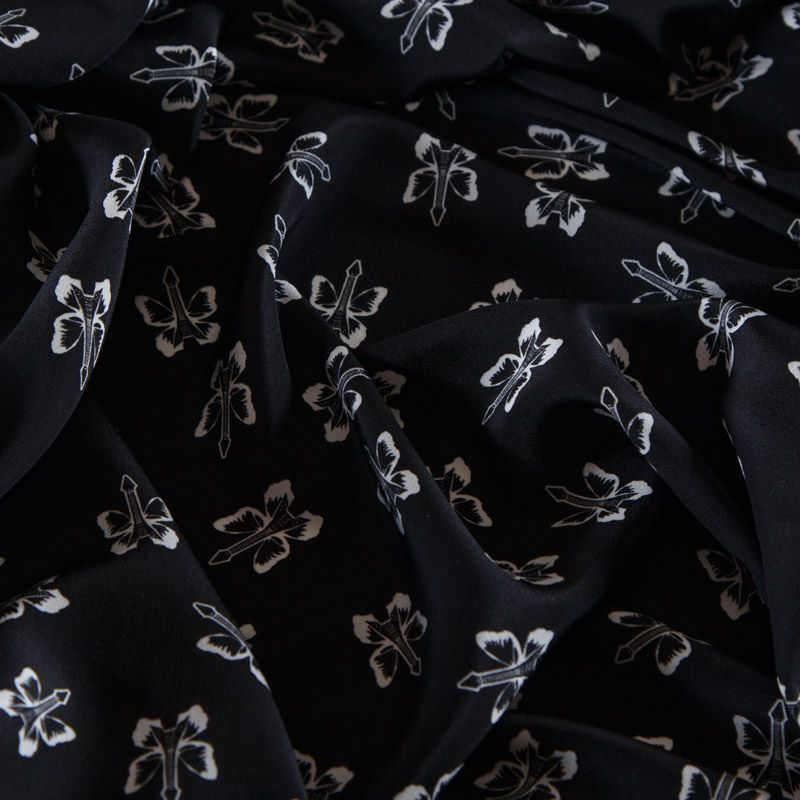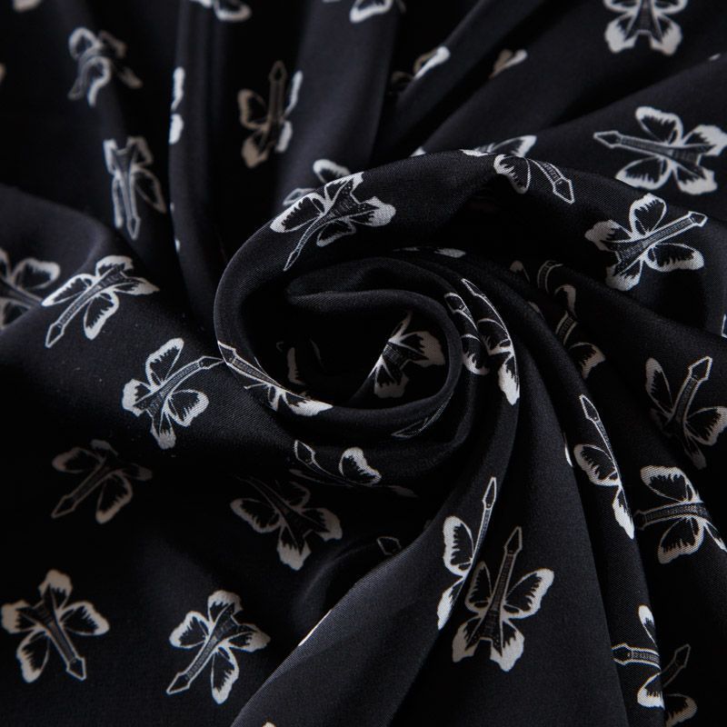 Крепдешин шелковый 028-12507 черный принтованный в Нарьян-Маре