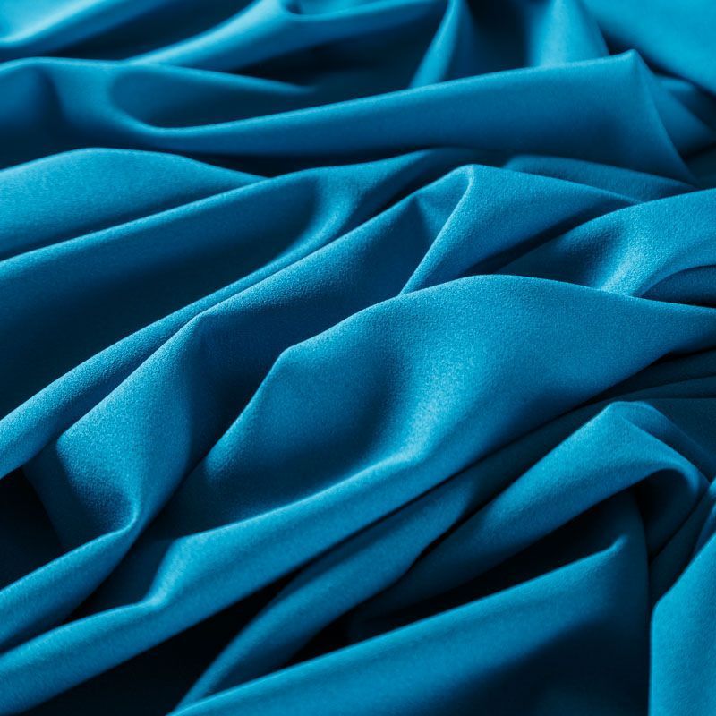 Крепдешин темно-бирюзового оттенка, тонкий, легкий, фактурный, приятный на ощупь. Очень пластичный, тянется за счет эластана в составе, прекрасно драпируется и струится. Ткань слегка просвечивает, можно использовать подклад. Идеально будет смотреться в платье, юбке, тунике, рубашке или блузке.