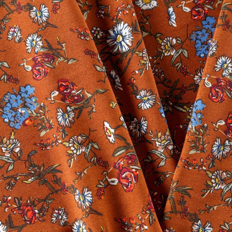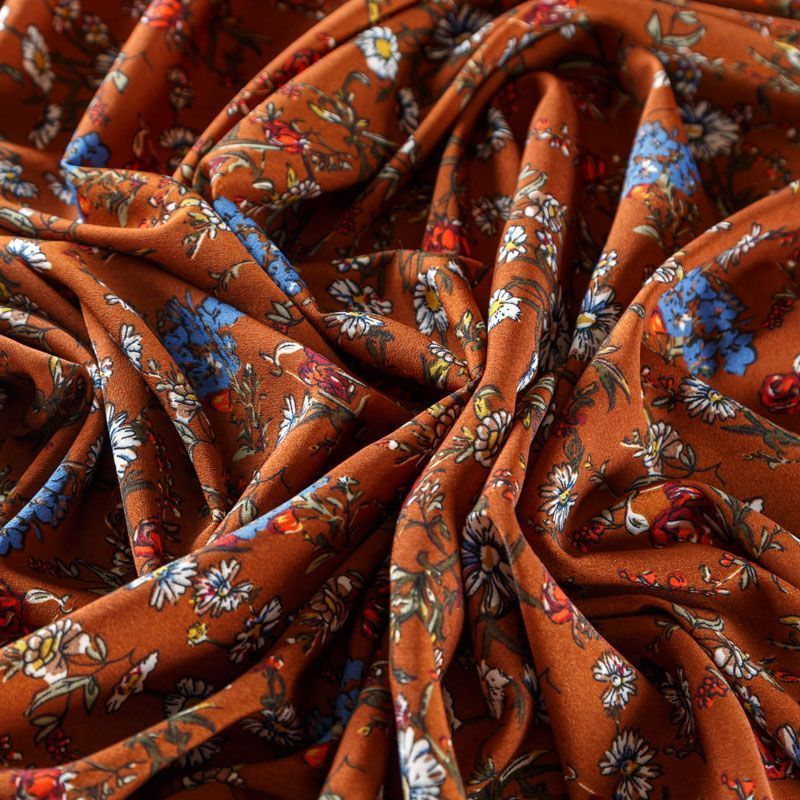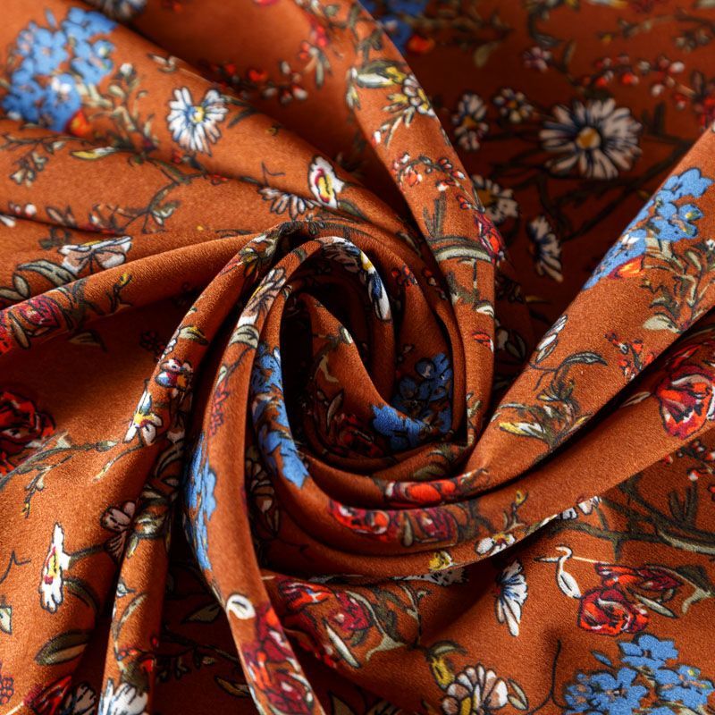 Крепдешин синтетический 029-08175 рыже-коричневый принтованный