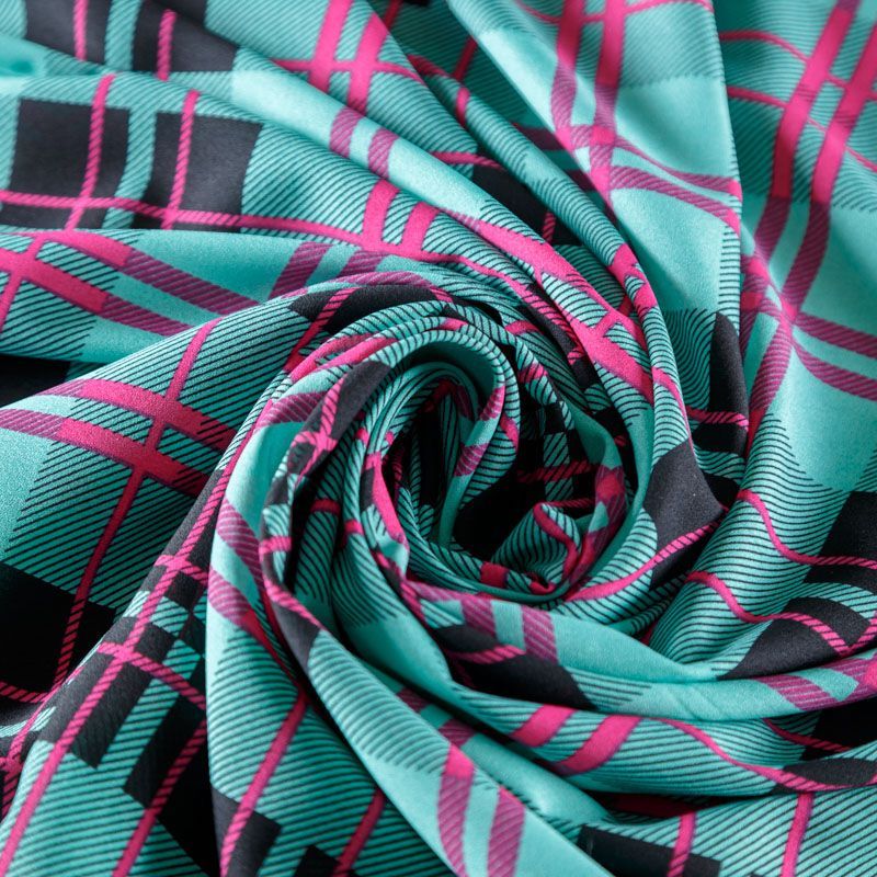 Крепдешин синтетический 029-08388 бирюзовый принтованный в Нарьян-Маре