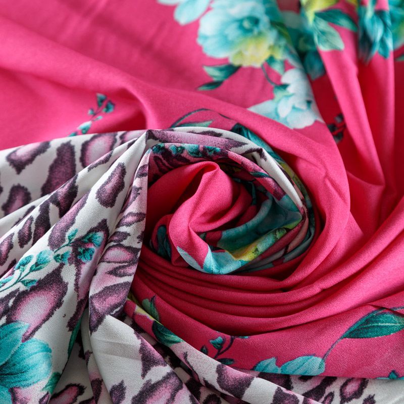 Крепдешин синтетический 029-08416 фуксия принтованный