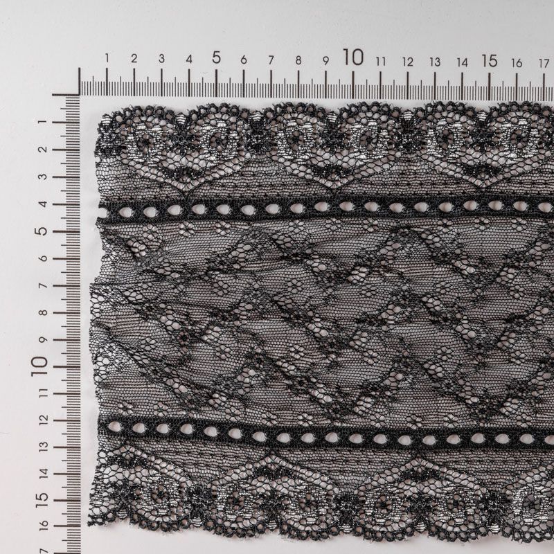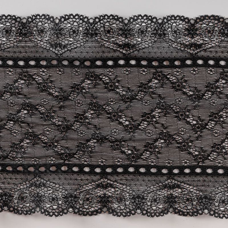 Эластичное кружево сочетает в себе мягкость, прочность и красоту, благодаря своей упругости оно долго не теряет первоначальную форму. Используется для пошива нижнего белья, а так же применяется как отделочный декор в одежде.