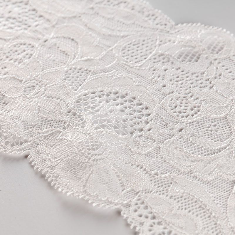 Эластичное кружево сочетает в себе мягкость, прочность и красоту, благодаря своей упругости оно долго не теряет первоначальную форму. Используется для пошива нижнего белья, а так же применяется как отделочный декор в одежде.