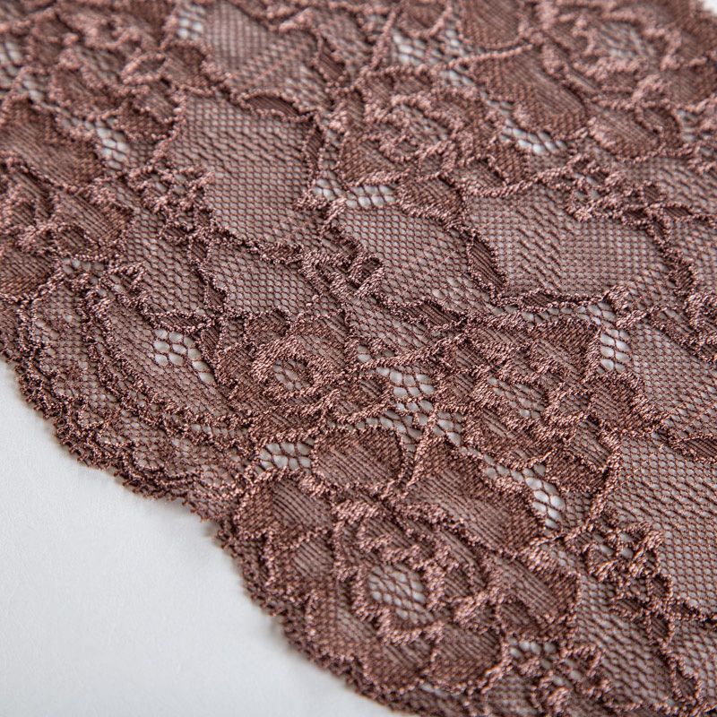 Эластичное кружево сочетает в себе мягкость, прочность и красоту, благодаря своей упругости оно долго не теряет первоначальную форму. Используется для пошива нижнего белья, а так же применяется как отделочный декор в одежде.