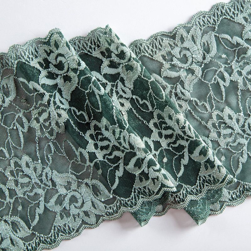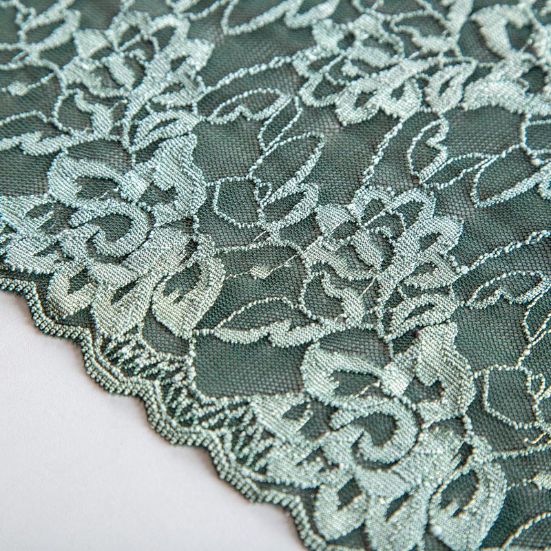 Эластичное кружево сочетает в себе мягкость, прочность и красоту, благодаря своей упругости оно долго не теряет первоначальную форму. Используется для пошива нижнего белья, а так же применяется как отделочный декор в одежде.