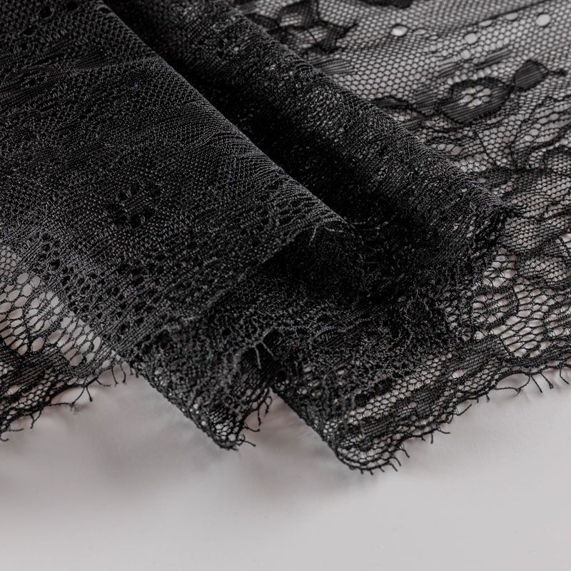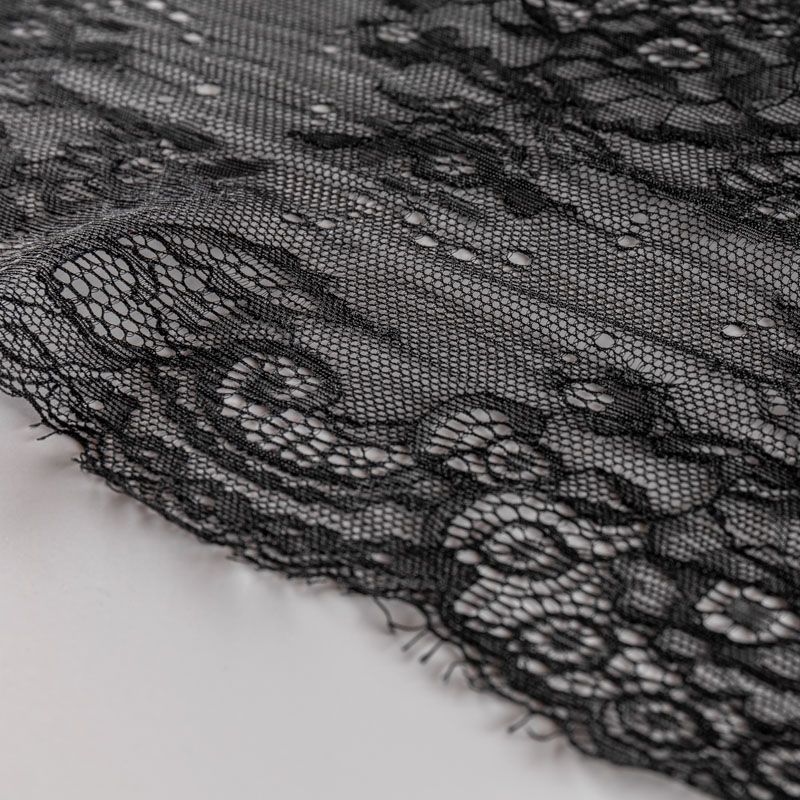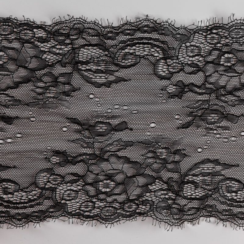 Эластичное кружево сочетает в себе мягкость, прочность и красоту, благодаря своей упругости оно долго не теряет первоначальную форму. Используется для пошива нижнего белья, а так же применяется как отделочный декор в одежде.
