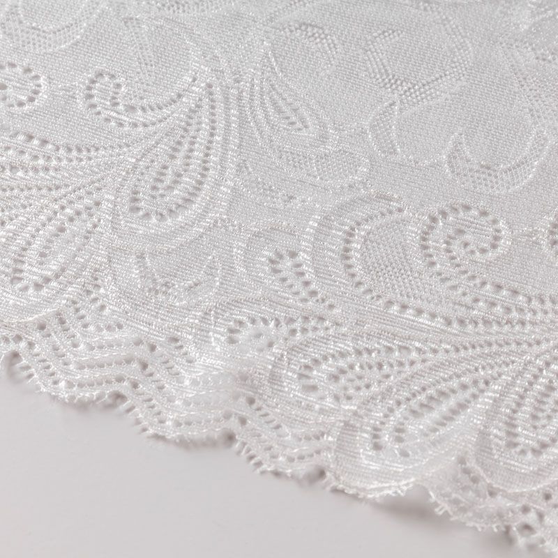 Эластичное кружево сочетает в себе мягкость, прочность и красоту, благодаря своей упругости оно долго не теряет первоначальную форму. Используется для пошива нижнего белья, а так же применяется как отделочный декор в одежде.