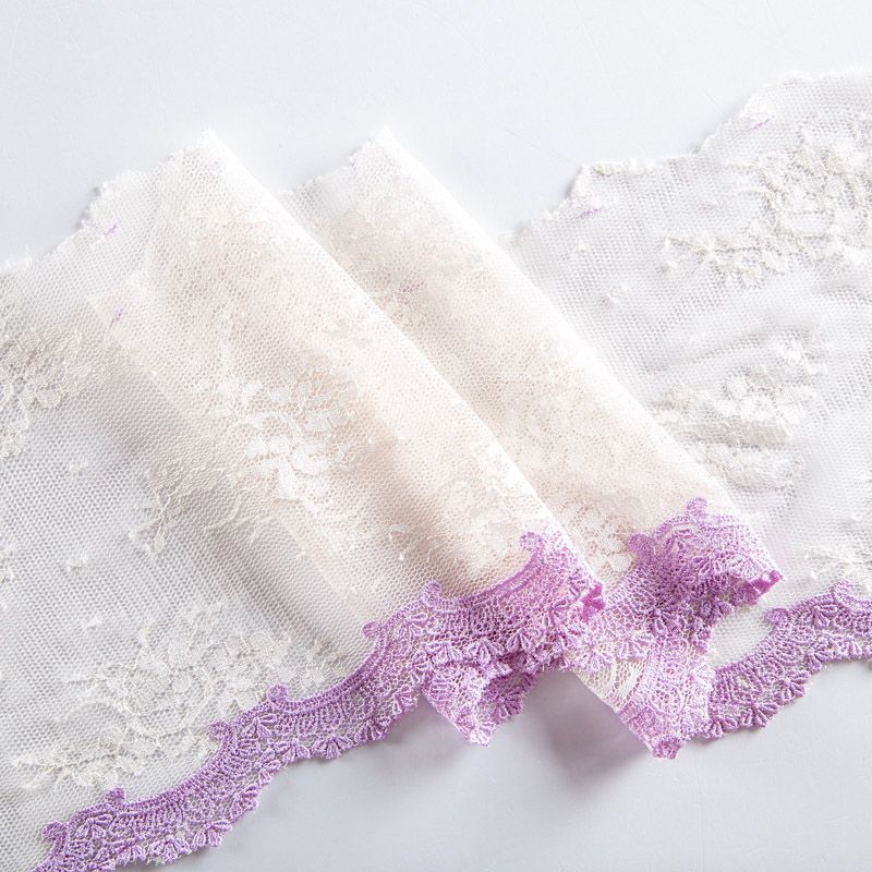 Эластичное кружево сочетает в себе мягкость, прочность и красоту, благодаря своей упругости оно долго не теряет первоначальную форму. Используется для пошива нижнего белья, а так же применяется как отделочный декор в одежде.