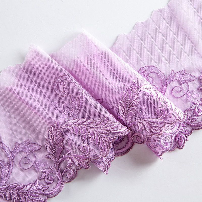 Эластичное кружево сочетает в себе мягкость, прочность и красоту, благодаря своей упругости оно долго не теряет первоначальную форму. Используется для пошива нижнего белья, а так же применяется как отделочный декор в одежде.