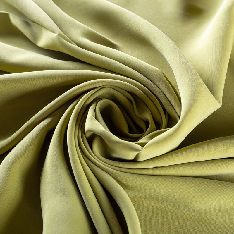 Купро плательно-костюмной плотности в оттенке зеленое яблоко. Ткань мягкая, пластичная, струящаяся, отлично драпируется, не просвечивает. Поверхность ткани бархатистая, похожа на мокрый шелк. Идеально подойдет для платьев свободного силуэта, брюк-палацио, юбок, шорт, туник, платья-рубашки, блузы.