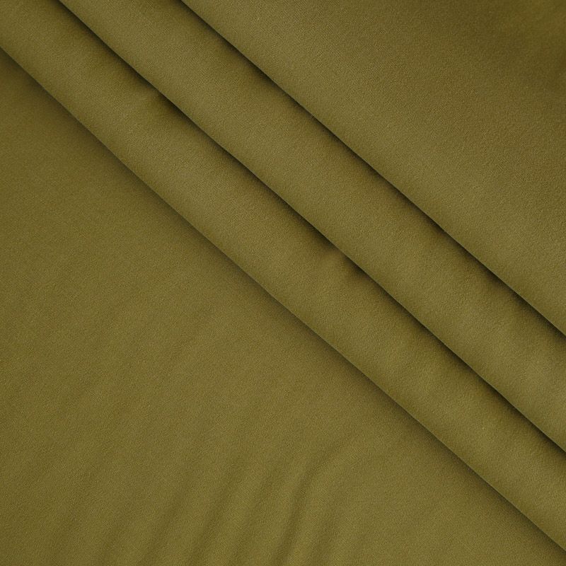 Итальянская купро плательно-костюмной плотности зеленого оттенка. Ткань мягкая, пластичная, струящаяся, отлично драпируется, не просвечивает. Поверхность ткани бархатистая, похожа на мокрый шелк. Идеально подойдет для платьев свободного силуэта, брюк-палацио, юбок, шорт, туник, платья-рубашки, блузы.