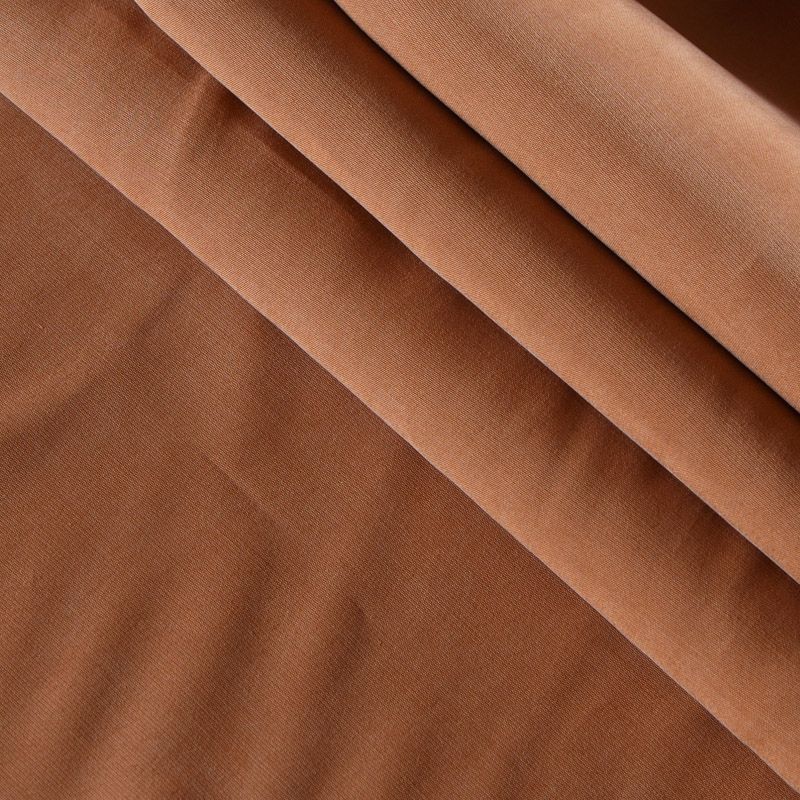 Итальянская купро плательно-костюмной плотности коричневого оттенка. Ткань мягкая, пластичная, струящаяся, отлично драпируется, не просвечивает. Поверхность ткани бархатистая, похожа на мокрый шелк. Идеально подойдет для платьев свободного силуэта, брюк-палацио, юбок, шорт, туник, платья-рубашки, блузы.