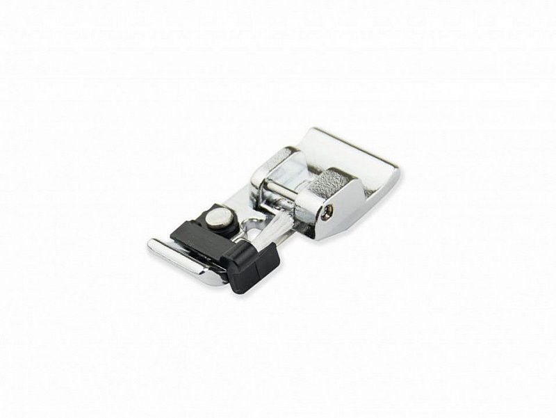 Лапка используется для краеобметочных строчек. Кисточка на лапке позволяет равномерно распределить нить при шитье. Лапка имеет направляющую для ткани, за счет которой край ткани сохраняется плоским. Идеально подходит для средних или тяжелых ткани, такие как твид, габардин и лен, строчка прокладывается ровно, край ткани не стягивается.