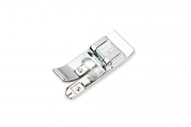 Лапка используется для иммитации оверлочного шва. Идеально подходит для средних или тяжелых тканей, таких как твид, габардин и лен. При шитье нить ложится на край ткани, при этом край не стягивается, а шов остается мягким. Лапка совместима с любыми швейными машинами с шириной зигзага не более 7 мм: