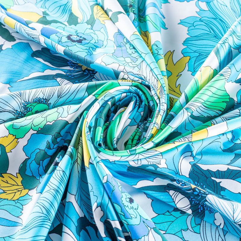 Итальянский бифлекс с ярким стилизованным цветочным принтом. Поверхность ткани матовая и гладкая. Отлично тянется, одежда из него не сковывает движения. Хорошо впитывает влагу и быстро высыхает, не вызывет аллергии и раздражения. Используется для пошива эстрадных, спортивных костюмов, купальников, боди.