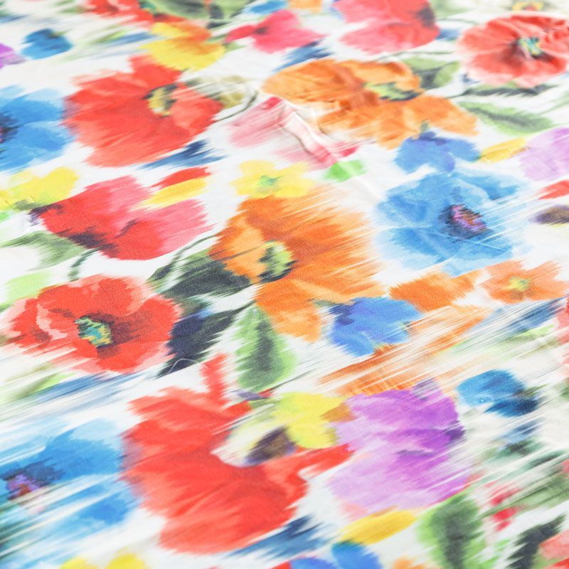 Итальяская качественная, красивая и приятная на ощупь лайкра белого цвета со стильым цветочным принтом. Идеально облегает фигуру, тянется по двум направлениям, хорошо драпируется, отлично держит форму, устойчива к пилингу, долговечна и гигроскопична. Используется для пошива одежды для танцев, гимнастики, фигурного катания, для велоспорта, легкой атлетики и аэробики, фитнеса и других видов спорта, для купальников, женского белья, театральных, цирковых и эстрадных костюмов.