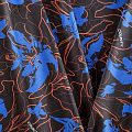 Итальяская качественная, красивая и приятная на ощупь лайкра черного цвета с фантазийным цветочным принтом в ярких неоновых оттенках. Поверхность ткани матовая и гладкая. Идеально облегает фигуру, тянется по двум направлениям, хорошо драпируется, отлично держит форму, устойчива к пилингу, долговечна и гигроскопична. Используется для пошива одежды для танцев, гимнастики, фигурного катания, для велоспорта, легкой атлетики и аэробики, фитнеса и других видов спорта, для купальников, женского белья, театральных, цирковых и эстрадных костюмов.