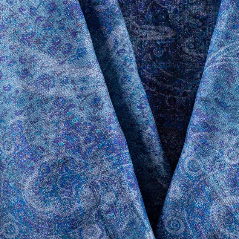 Итальянский лен, декорированный узором пейсли в фиолетовых и синих тонах. Ткань прочная, имеет матовую рельефную поверхность и полотняное переплетение, отлично держит форму, пластичная, комфортная в изделии. Отлично подойдет для пошива для летних костюмов, рубашек, туник, платьев, сарафанов, юбок, жакетов, брюк или шорт.