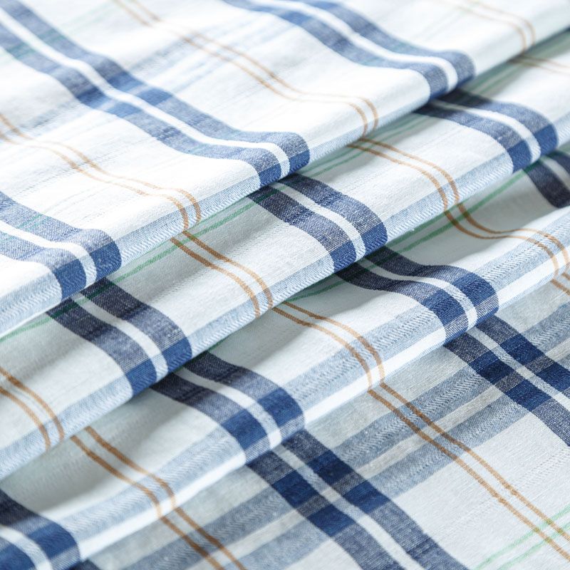 Льняная плательно-рубашечная ткань с добавлением полиэстера белого цвета с гоеметрическим принтом. Материал прочный, с выразительной матовой рельефной поверхностью, полотняным плетением, хорошо держит форму, мягкий на ощупь, пластичный, отлично драпируется. Прекрасно подойдет для пошива летних платьев, сарафанов, юбок, рубашек, брюк и шорт.