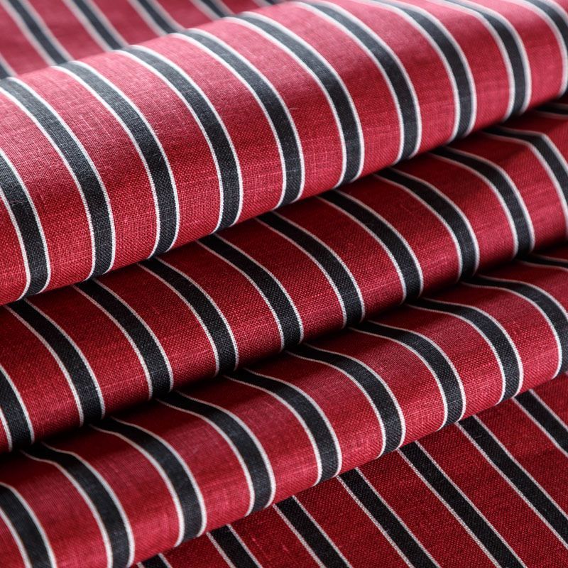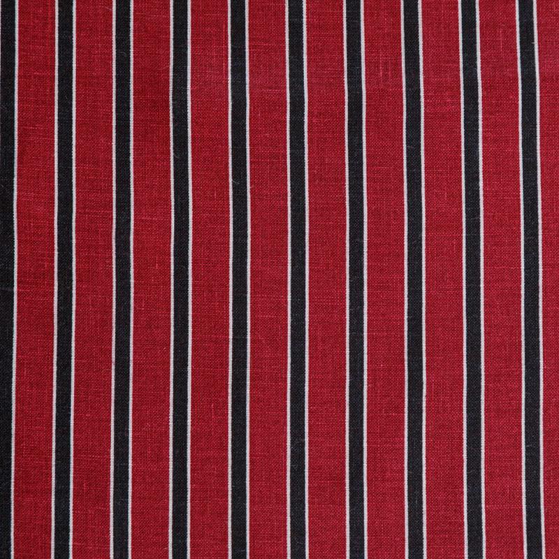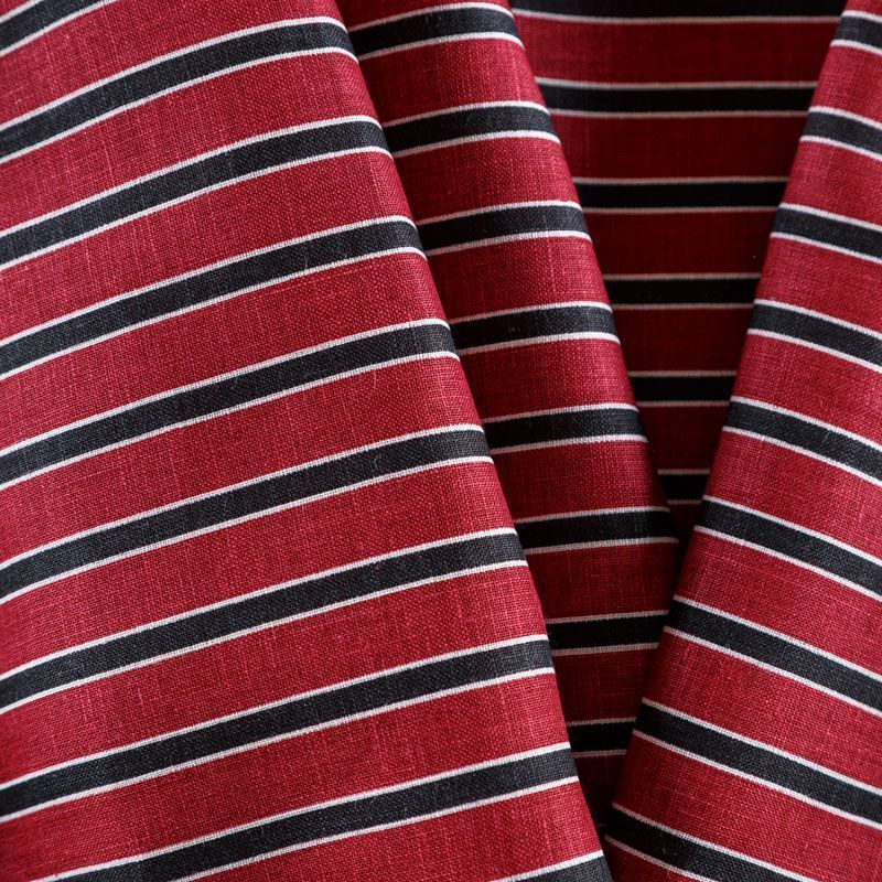 Итальянский костюмно-плательный лен в бордовом оттенке в черно-белую вертикальную полоску. Ткань прочная, имееет на ощупь приятную, гладкую поверхность, а визуально - выраженный рельеф и полотняное переплетение, держит форму, пластичная. Подойдет для пошива костюмов, брюк, шорт, юбок, платьев, сарафанов, топов, комбинезонов, жакетов, кардиганов.