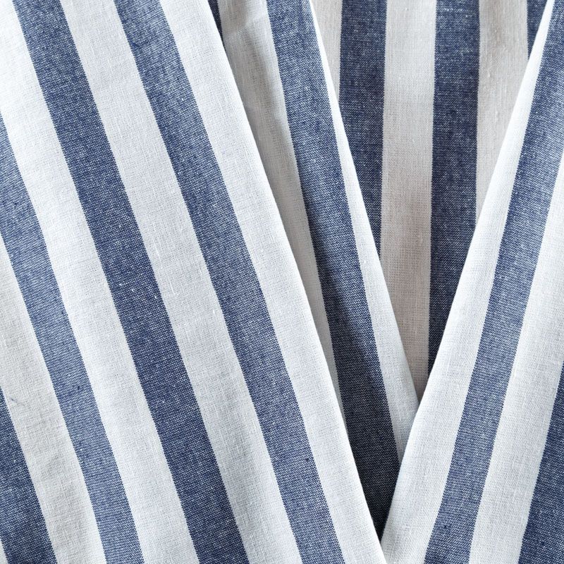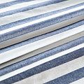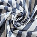 Итальянский костюмно-плательный лен в горизонтальную полоску цвета денима. Ткань прочная, имееет на ощупь приятную, гладкую поверхность, а визуально - выраженный рельеф и полотняное переплетение, держит форму. Подойдет для пошива костюмов, брюк, шорт, юбок, платьев, сарафанов, топов, комбинезонов, жакетов, кардиганов.