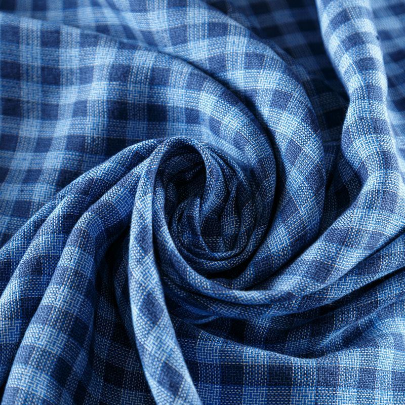 Итальянский костюмно-плательный лен в среднюю сине-голубую клетку. Ткань прочная, имееет на ощупь приятную, гладкую поверхность, а визуально - выраженный рельеф и полотняное переплетение, держит форму, пластичная. Подойдет для пошива костюмов, брюк, шорт, в том числе мужских, юбок, платьев, сарафанов, топов, комбинезонов, жакетов, кардиганов.