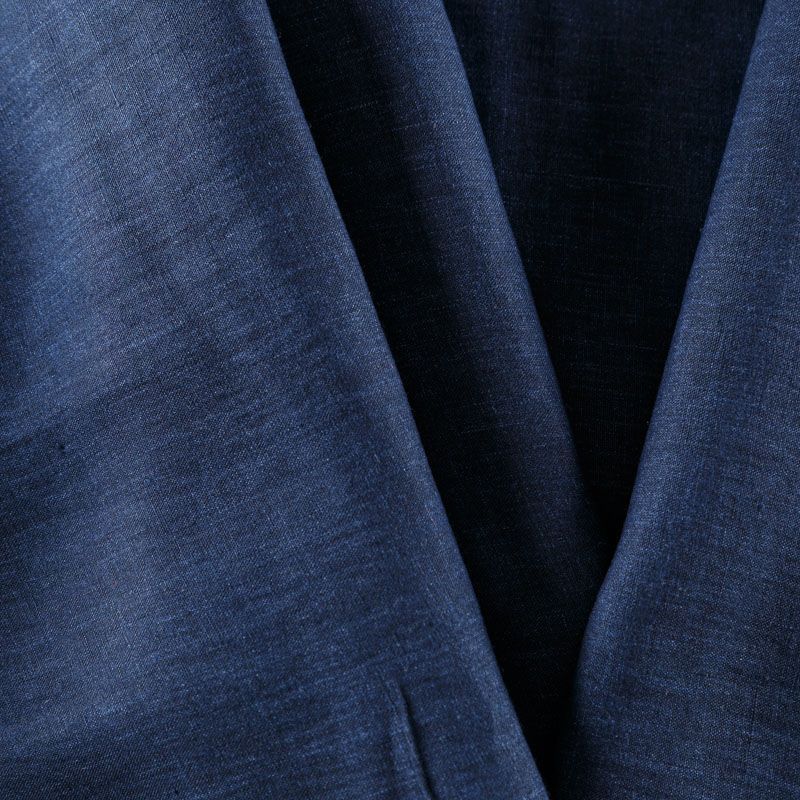 Итальянский костюмно-плательный лен оттенка темно-синего джинса. Ткань прочная, имееет на ощупь приятную поверхность, визуально - выраженный рельеф и полотняное переплетение, держит форму, пластичная. Подойдет для пошива костюмов, жилета, брюк, шорт, в том числе мужских, юбок, платьев, сарафанов, топов, комбинезонов, жакетов, кардиганов.