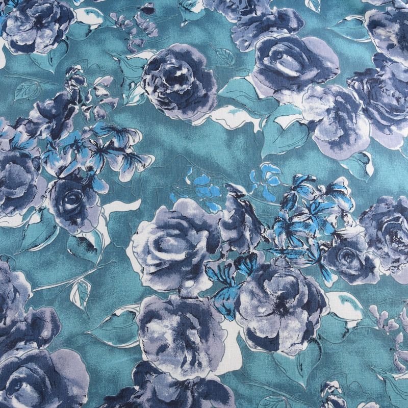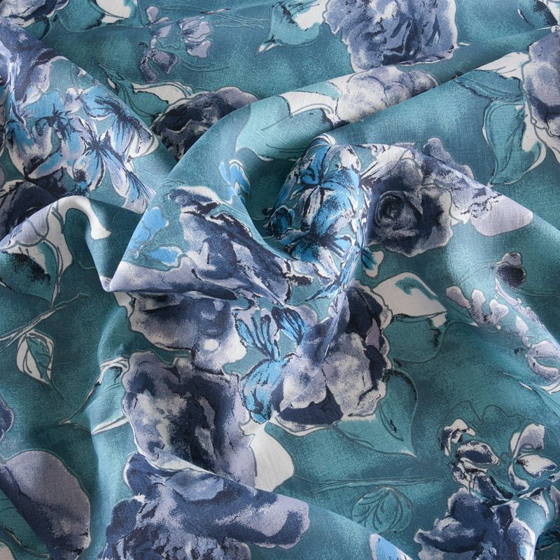 Лен натуральный 035-11767 темно-бирюзовый принтованный в Нарьян-Маре