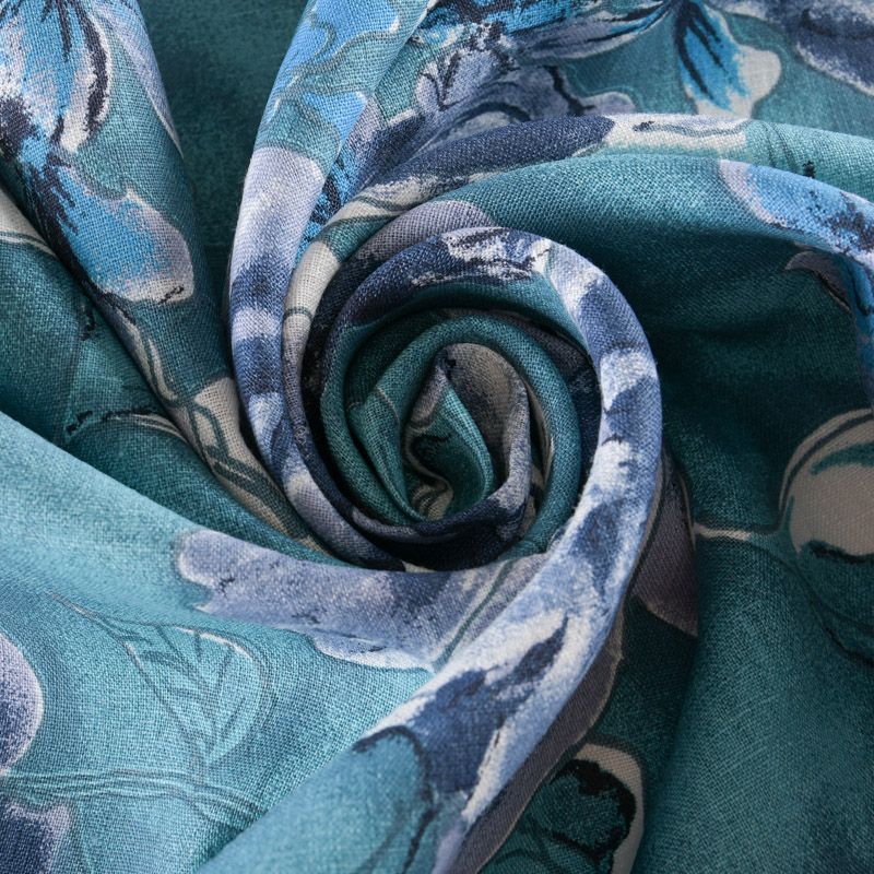 Лен натуральный 035-11767 темно-бирюзовый принтованный
