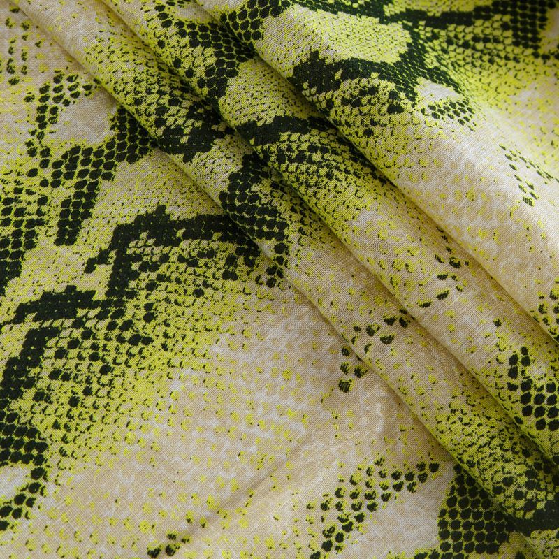 Итальянский плательно-рубашечный лен с ярким анималичтичным принтом средней плотности. Ткань прочная, имееет выразительную матовую рельефную поверхность и полотняное переплетение, хорошо держит форму. Подойдет для пошива брюк, шорт, юбок, платьев, сарафанов, топов, комбинезонов, жакетов, кардиганов.