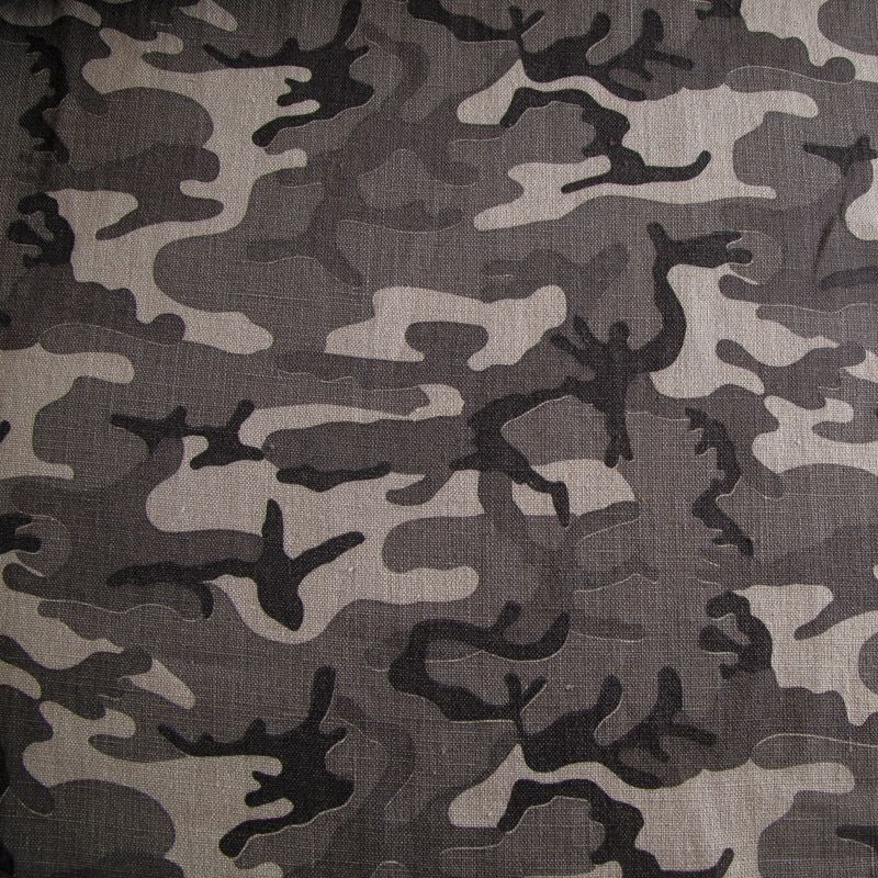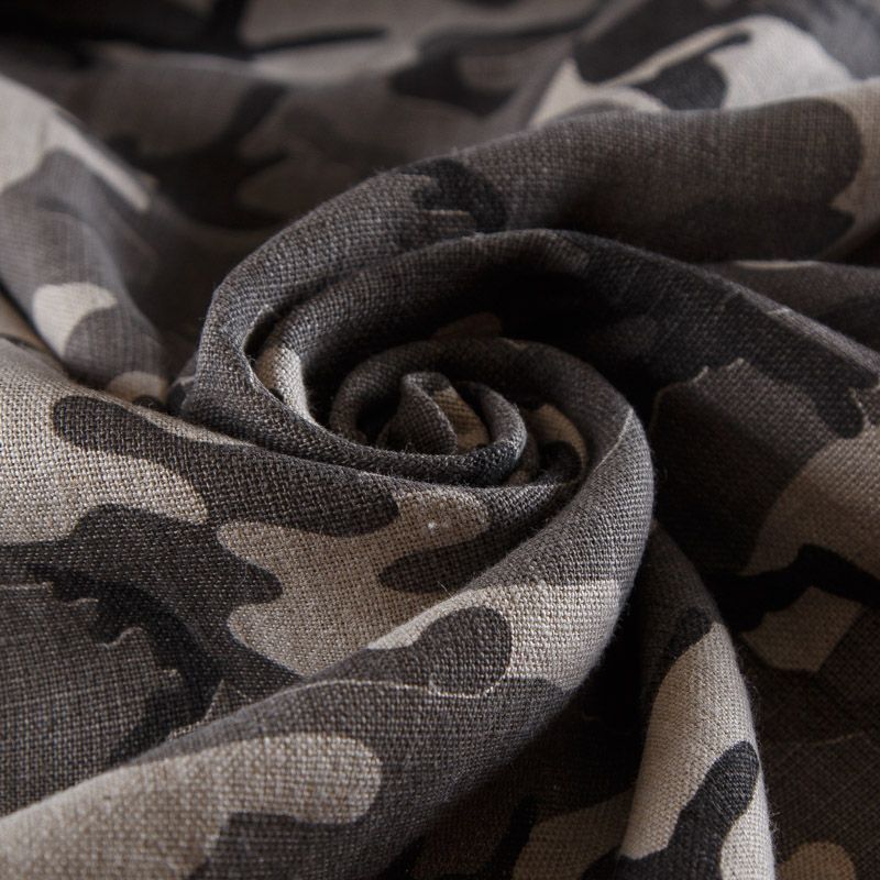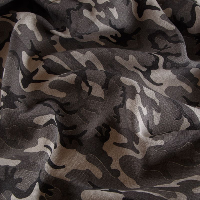 Итальянский костюмно-плательный лен с камуфлированным принтом в серо-бежевых оттенках. Ткань прочная, имеет матовую рельефную поверхность и полотняное переплетение, отлично держит форму, пластичная, комфортная в изделии. Отлично подойдет для пошива для летних костюмов, рубашек, туник, платьев, сарафанов, юбок, жакетов, брюк или шорт.