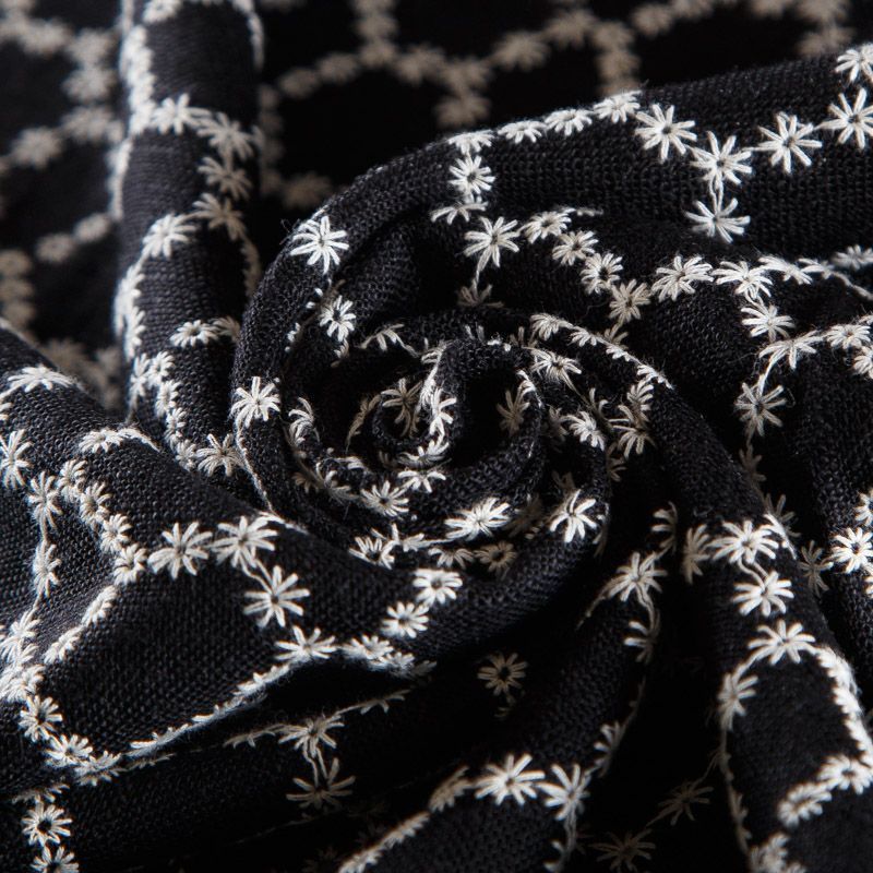 Лен натуральный с вышивкой 035-16633 черный