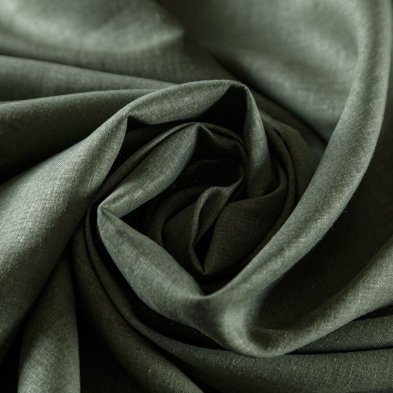 Итальянский плательно-рубашечный умягченный лен с добавлением вискозы средней плотности. Ткань прочная, имееет выразительную матовую рельефную поверхность и полотняное переплетение, слегка светит, тянется за счет эластана в составе. Материал очень пластичный, хорошо драпируется, держит форму. Подойдет для пошива брюк, шорт, юбок, платьев, сарафанов, топов, комбинезонов, легких жакетов, кардиганов.