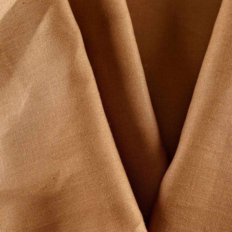 Итальянский плательно-рубашечный лен с добавлением вискозы в оттенке корицы. Ткань прочная, имееет на ощупь приятную, гладкую поверхность, а визуально - выраженный рельеф и полотняное переплетение, держит форму, пластичная. Подойдет для пошива рубашек, брюк, шорт, юбок, платьев, сарафанов, топов, туники, комбинезона.